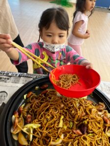 また子供たち一人一人が、それぞれの役割を果たしみんなで協力して作り上げた焼きそば👨🏻🍳を自分が食べられると感じた量だけを盛り付ける😊次の人のことを考えて盛り付ける😊といった”他者への思いやり” を獲得するためのクッキング活動でもあります。