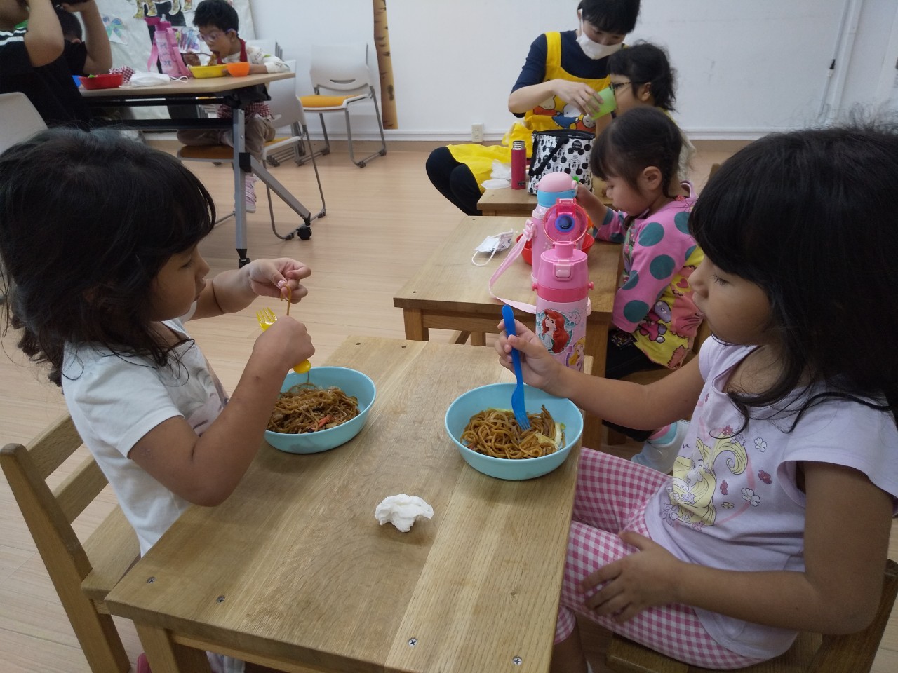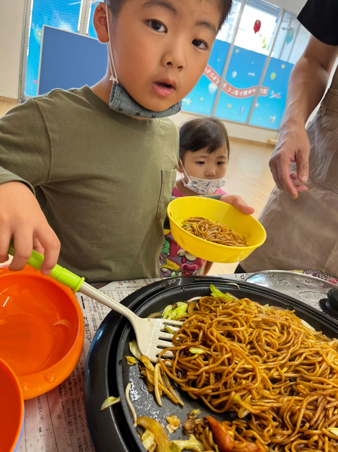 また子供たち一人一人が、それぞれの役割を果たしみんなで協力して作り上げた焼きそば👨🏻🍳を自分が食べられると感じた量だけを盛り付ける😊次の人のことを考えて盛り付ける😊といった”他者への思いやり” を獲得するためのクッキング活動でもあります。