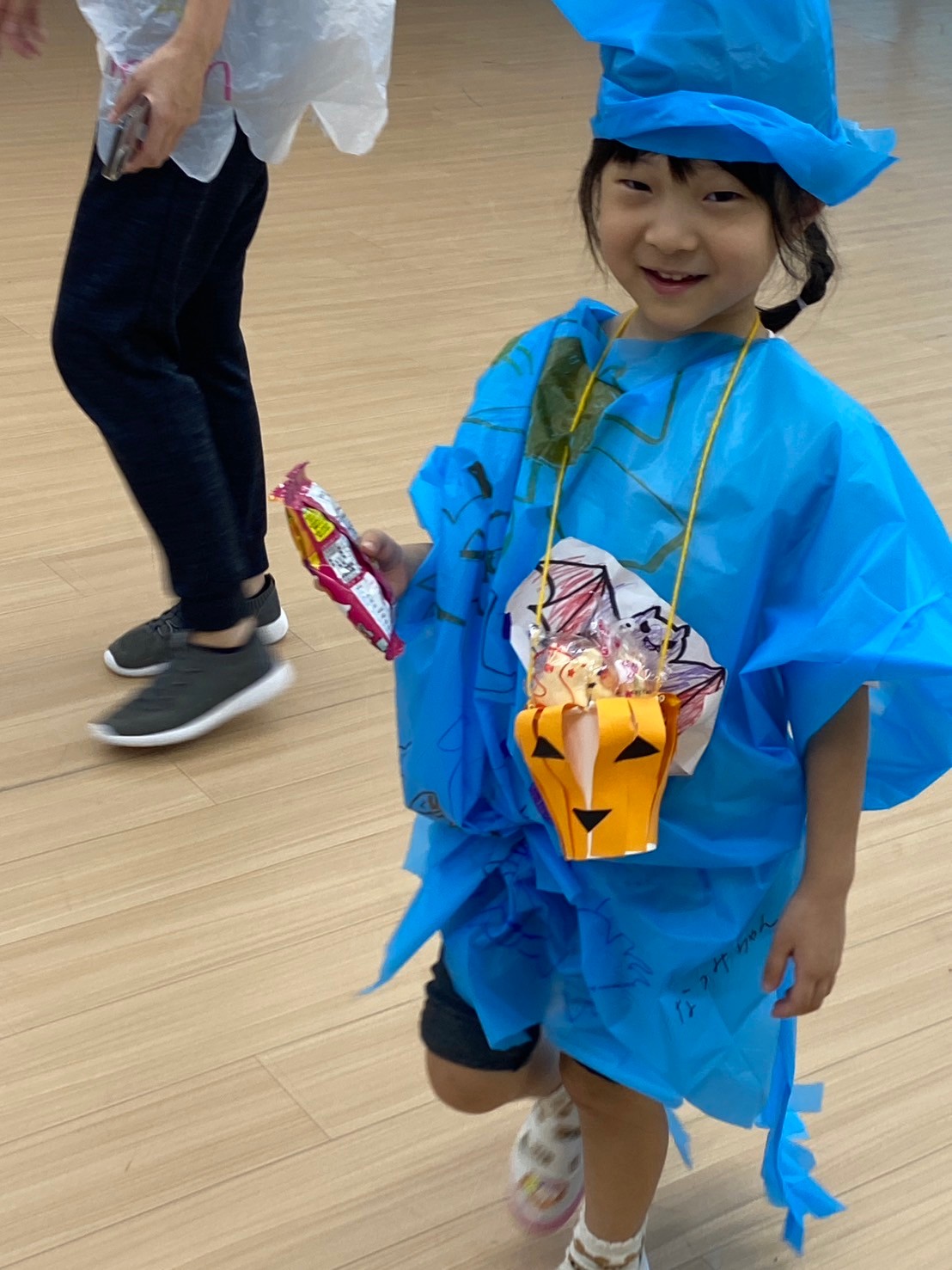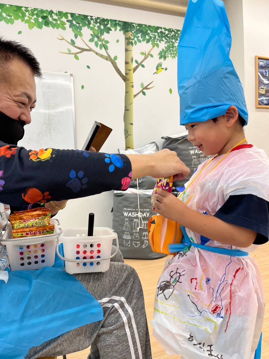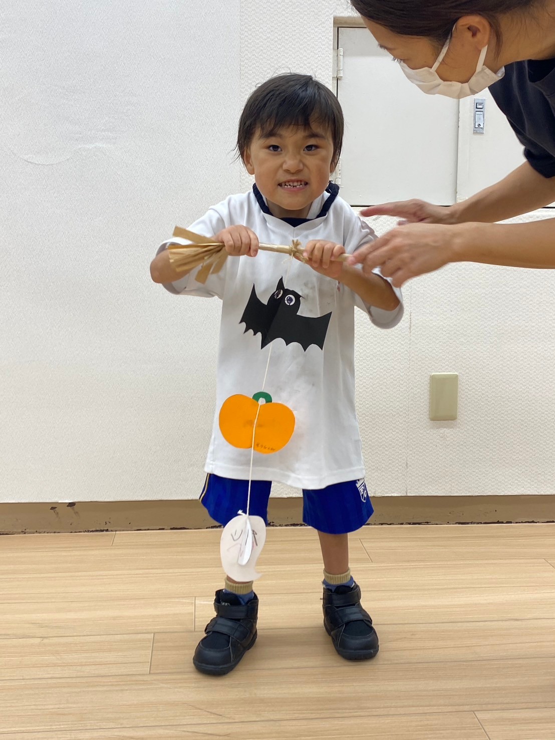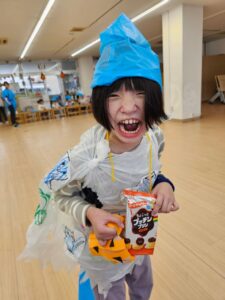 外国のお祭りであることを伝え、一人ひとりが認識できた子どもたちは、日本風にお菓子をもらうための魔法😀「トリック・オア・トリート❗」を一生懸命に奏でていました👏