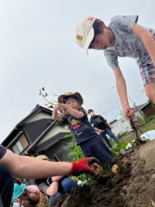 社長の畑で育てたジャガイモ🥔🥔🥔、思いっきり泥んこ😊😊になりながら力いっぱい掘りだそ~~~💪