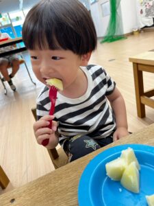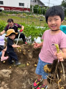 「ジャガイモ🥔って何処にできてた❓❓」と聞くと、子どもたち全員が「土の中から出てきた~🐛」と自ら体験し獲得した正しい答えを認識してくれました🥰